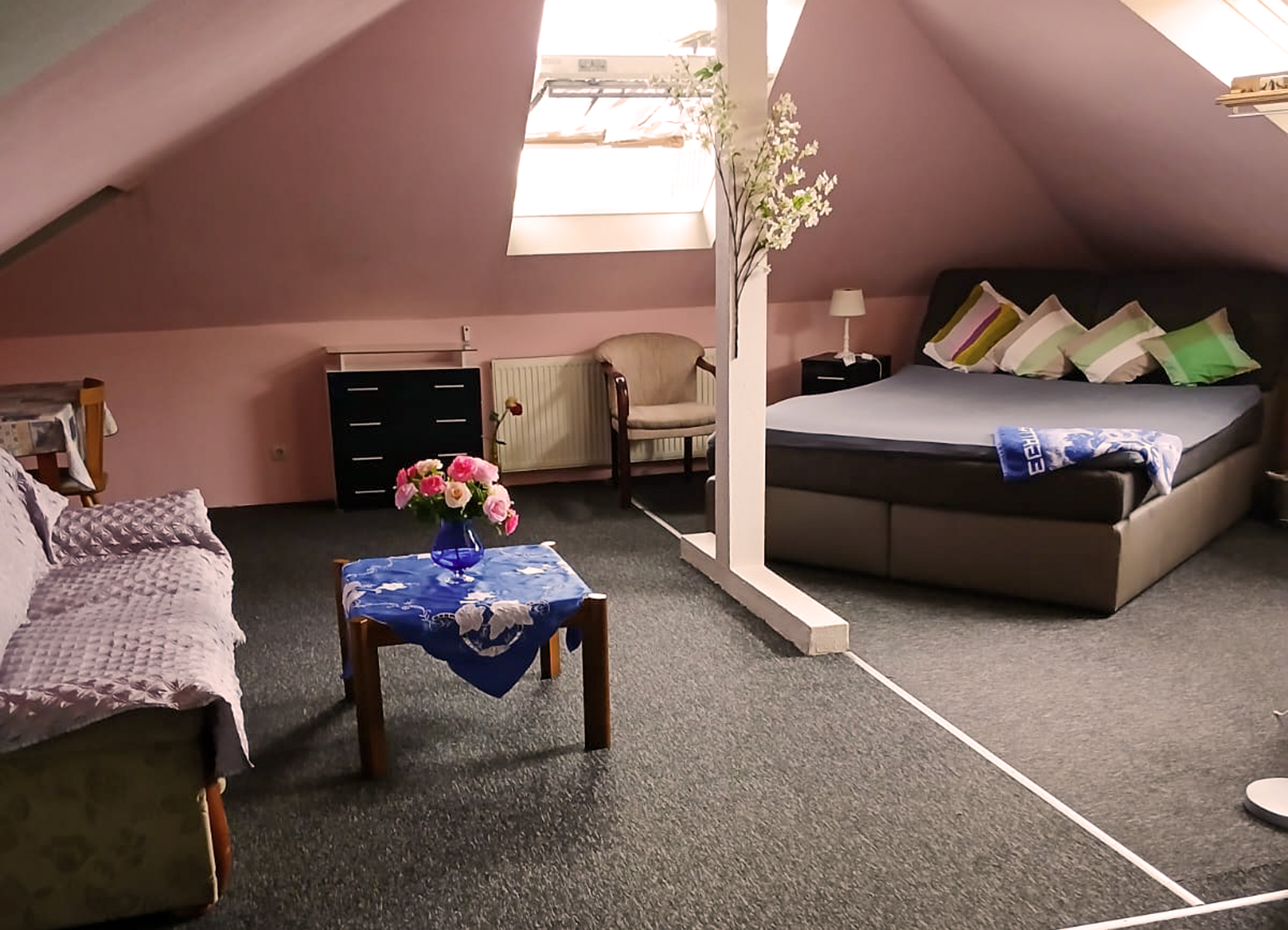 Das Apartment liegt im Dachgeschoss und ist ca. 45m2 groß. Es ist mit einem großen Bett und Sofa. Das Apartment beinhaltet unter eine Dusche und Toilette. Handtücher und Duschgel Vorhanden. Ein großartiger Ort um Spannungen abzubauen und zum Empfangen aller Sexuellen und erotischen Vergnügen erwiesen. Hier im privat Bordell, findest du den besten Sex deines Lebens, Sexuelle Erlebnisse ohne Verpflichtungen.